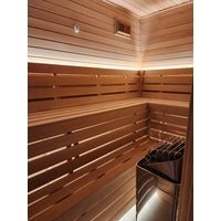 Custom Indoor Cedro Sauna™ - Benching with Prebuilt Dense Cover Skirting (Hamptons & Nashville)