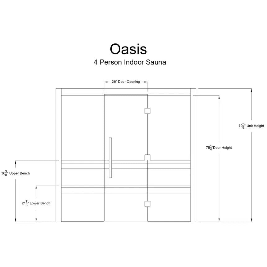 The Oasis 4-Person Deluxe Multi-Level Sauna is a spacious and luxurious addition to any home, designed to accommodate up to four people comfortably. Crafted from high-quality hemfir or rustic cedar, this sauna not only enhances the beauty of your space but also ensures longevity. Featuring two levels of seating, it allows users to choose their preferred heat intensity. The powerful 8kW wall-mounted heater efficiently heats the large interior, ensuring a consistent and soothing environment. Perfect for families or entertaining guests, the Oasis sauna is where relaxation meets sophistication.