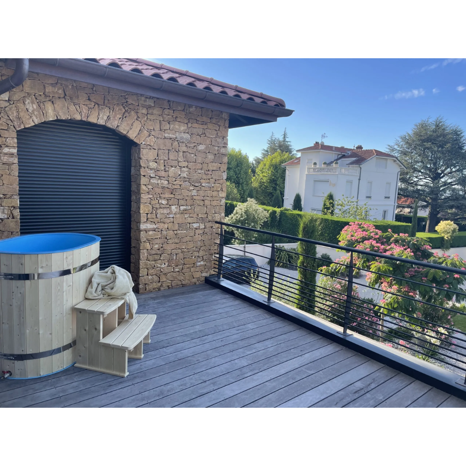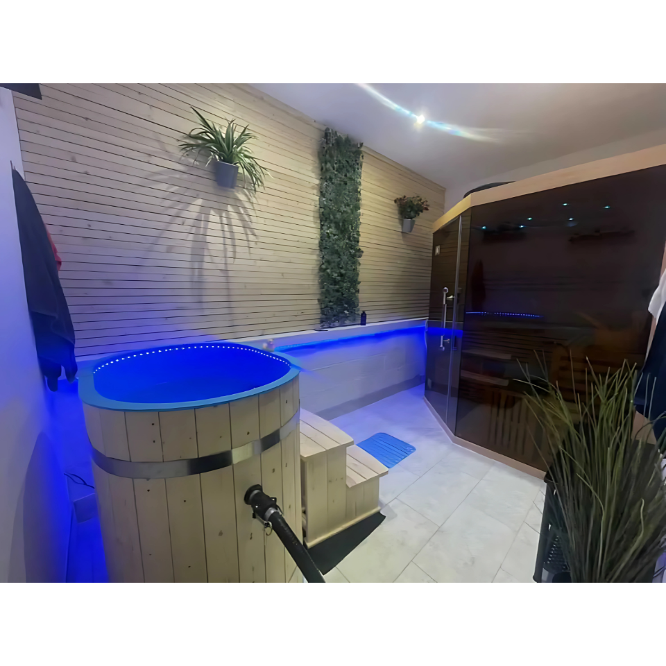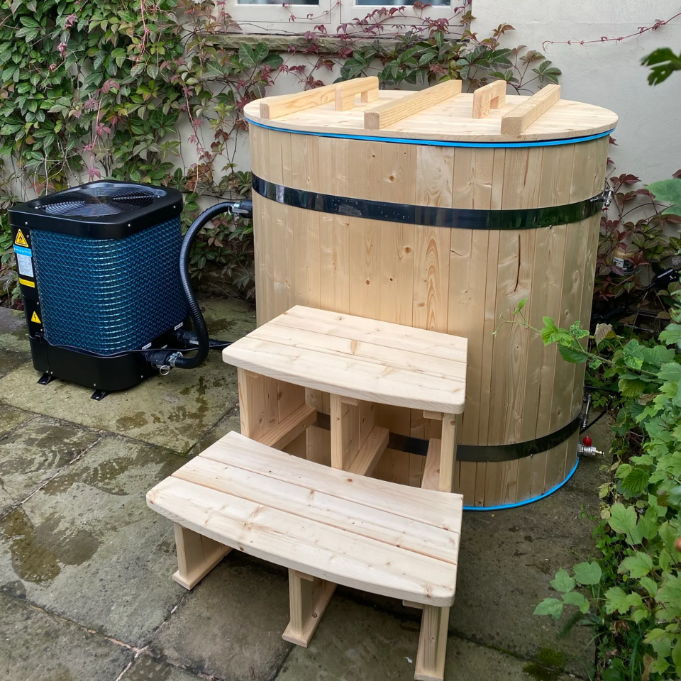 The Heritage™ Laguna is a beautifully handcrafted oval cold tub, designed for one to two users. Compact enough to fit through most standard doorways and garden gates, it features a light blue food-grade polypropylene interior and a spruce wood exterior — making it both durable and eye-catching. Complete with steps, a wooden lid, and an integrated seat, the Laguna cold tub is ready for refreshing cold plunge therapy right out of the box.